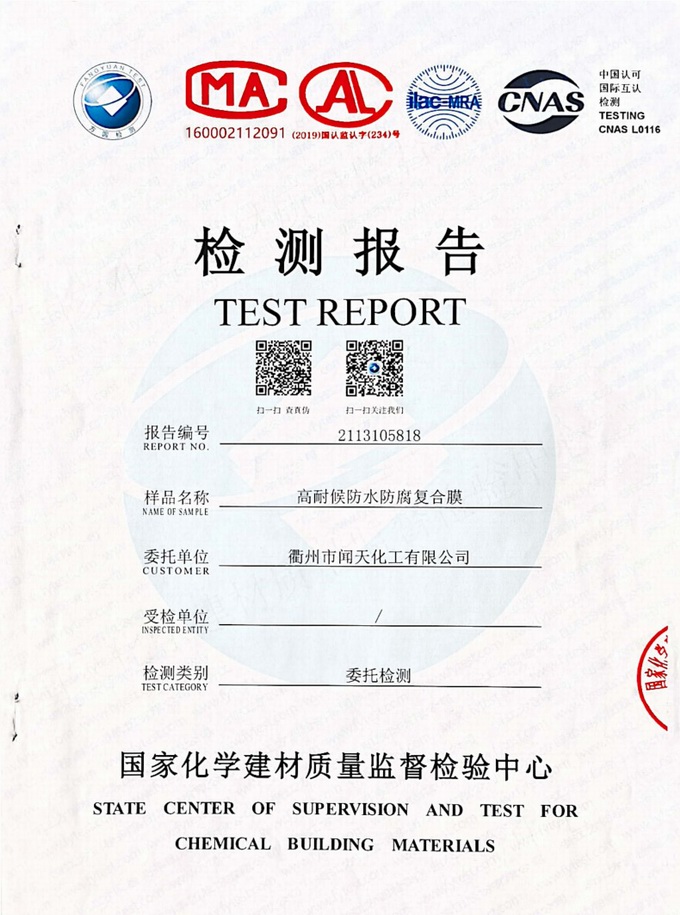 Composite membrane waterproof test
