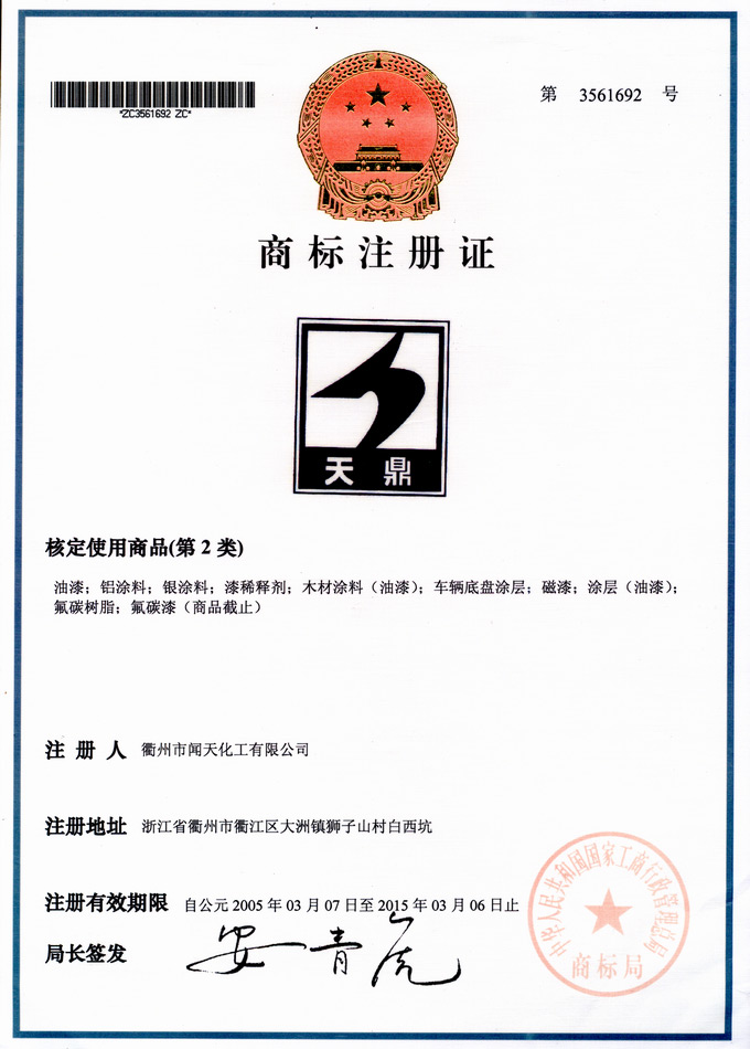 Trademark registration certificate